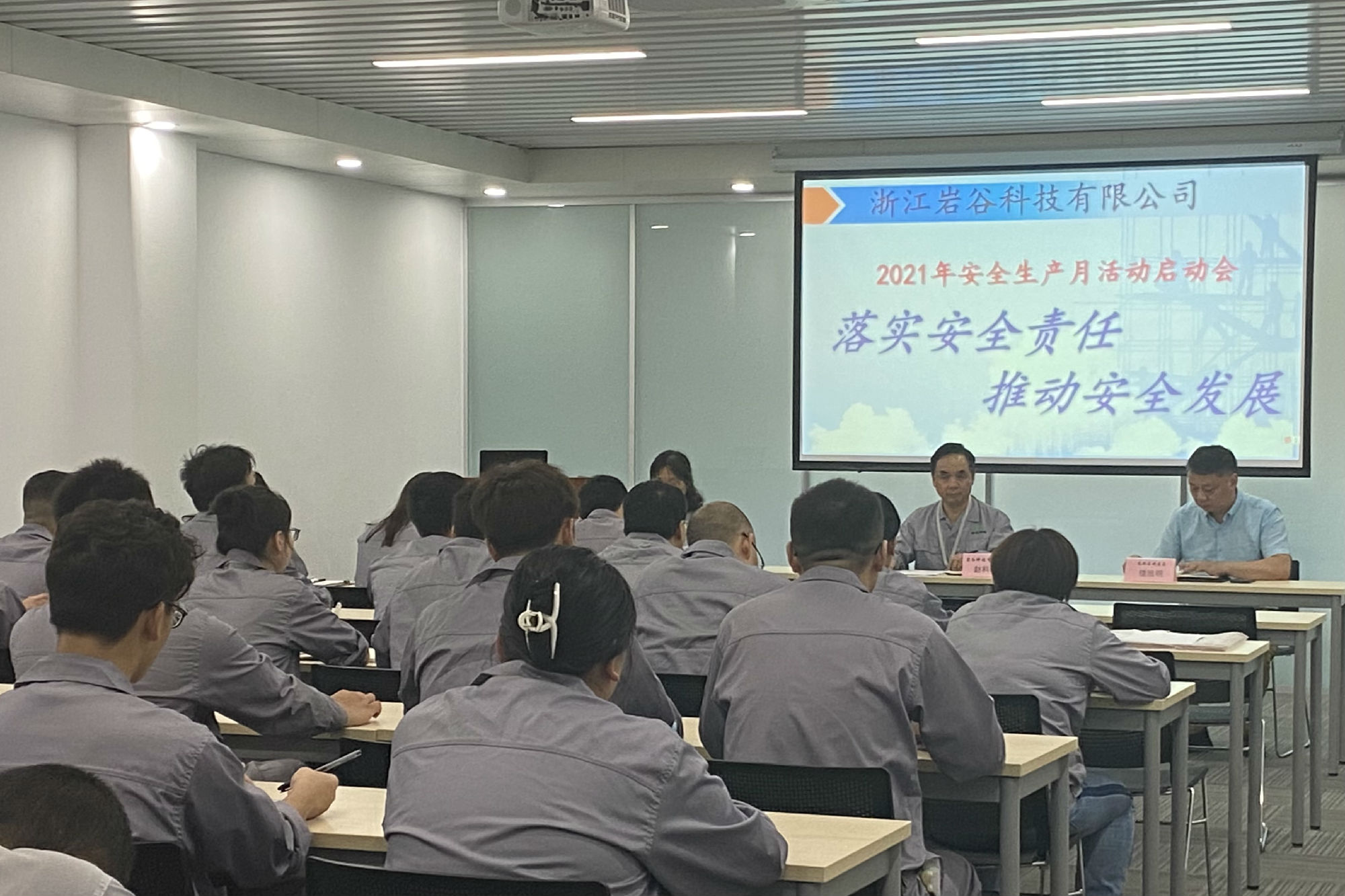 2021年6月1日,浙江巖谷科技有限公司組織了關于2021年安全生產月活動啟動會;會議主要圍繞“落實安全責任 推動安全發展”安全主題展開。
