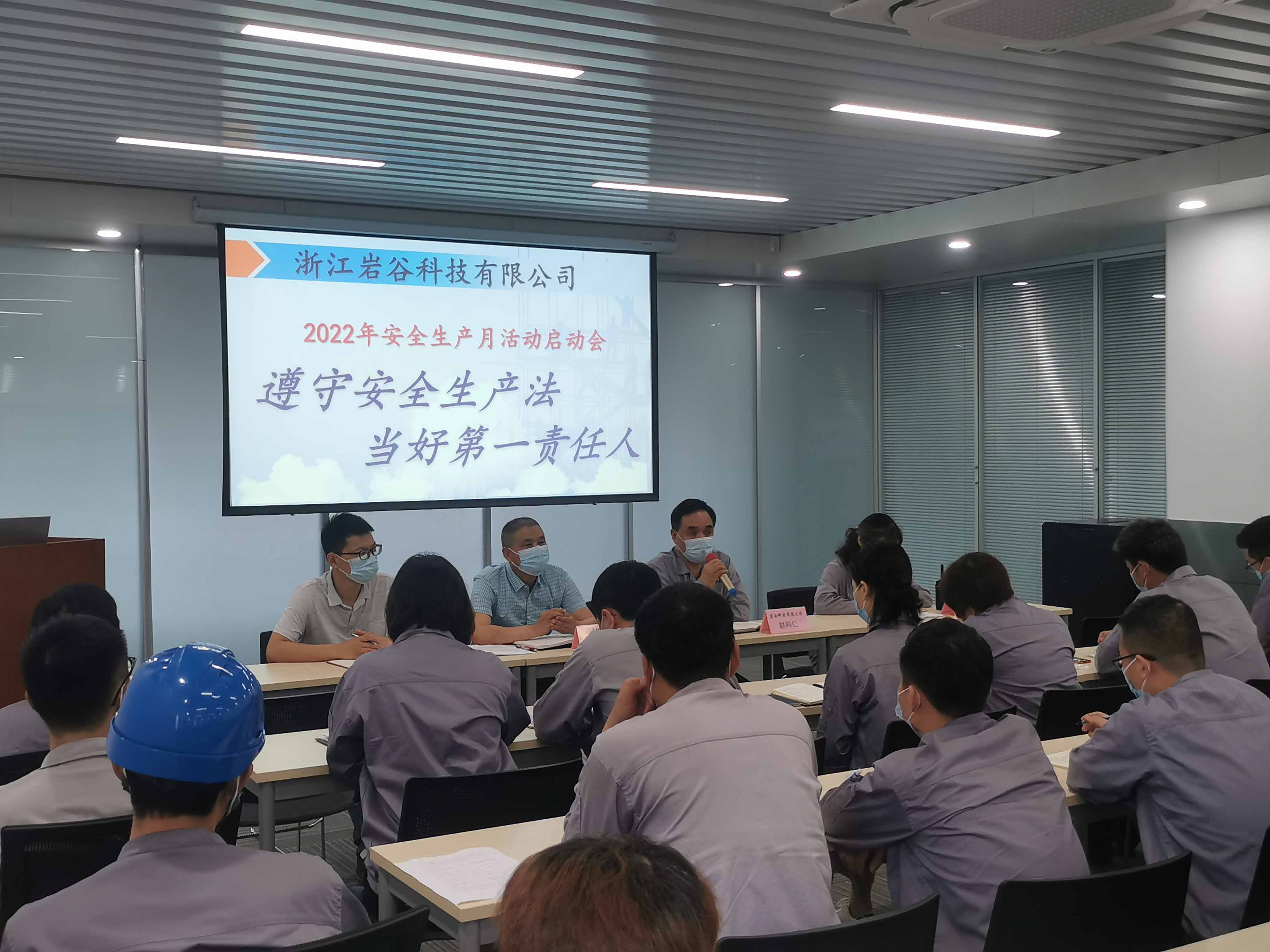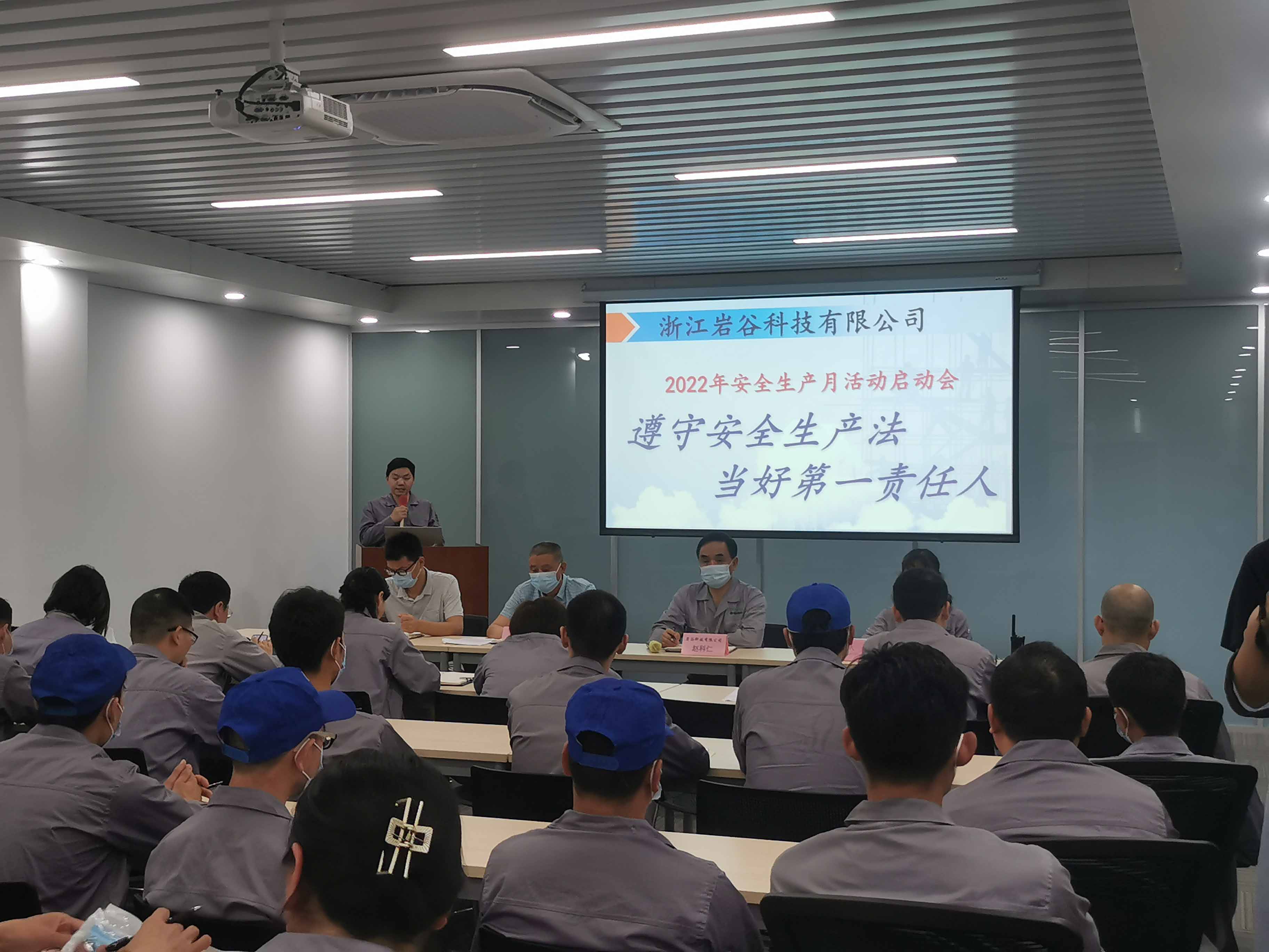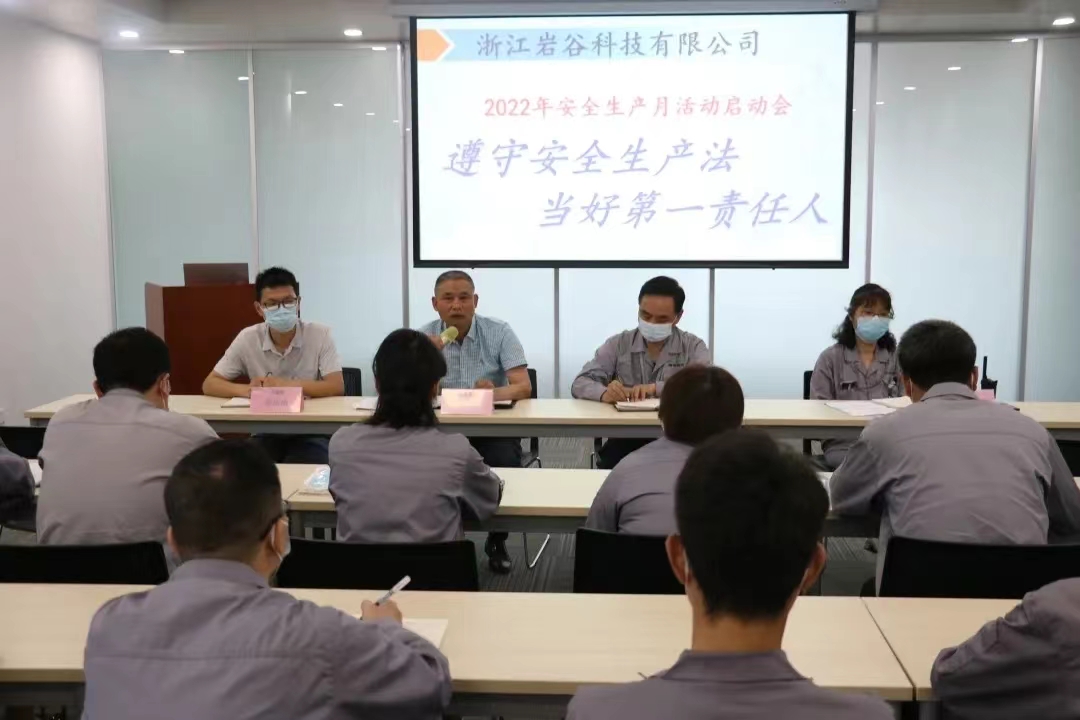 2022年6月1日,浙江巖谷科技有限公司開展了“遵守安全生產法,當好第一責任人”為主題的安全生產月啟動儀式,蘇溪鎮副鎮長、公司總經理趙科仁等參加啟動儀式并發表講話。啟動儀式結束后,參會人員簽署了2022年員工安全承諾書。