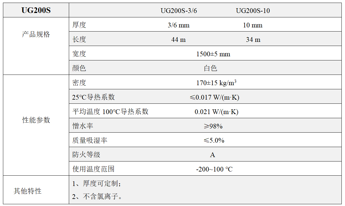 UG200S為超低導(dǎo)熱系數(shù)保冷型產(chǎn)品,推薦使用溫度為-200℃~100℃。主要應(yīng)用為保冷,推薦應(yīng)用領(lǐng)域為冰箱、冷庫、LNG儲運等。